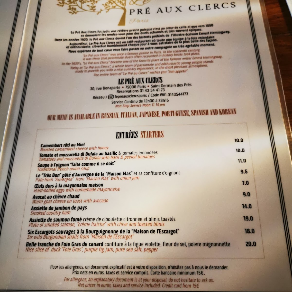 Welcome to Le Pré aux Clercs, a delightful culinary gem nestled in the heart of Paris at 30 Rue Bonaparte. This restaurant effortlessly blends a vibrant atmosphere with a menu that celebrates classic French cuisine.